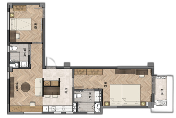 该户型采用分床式设计,让每个入住居民都能安心舒享生活的美好。卧室连接独立宽阔大阳台,清风徐来,小坐片刻,欣赏园区闲适趣景,感受慢生活的恬静。