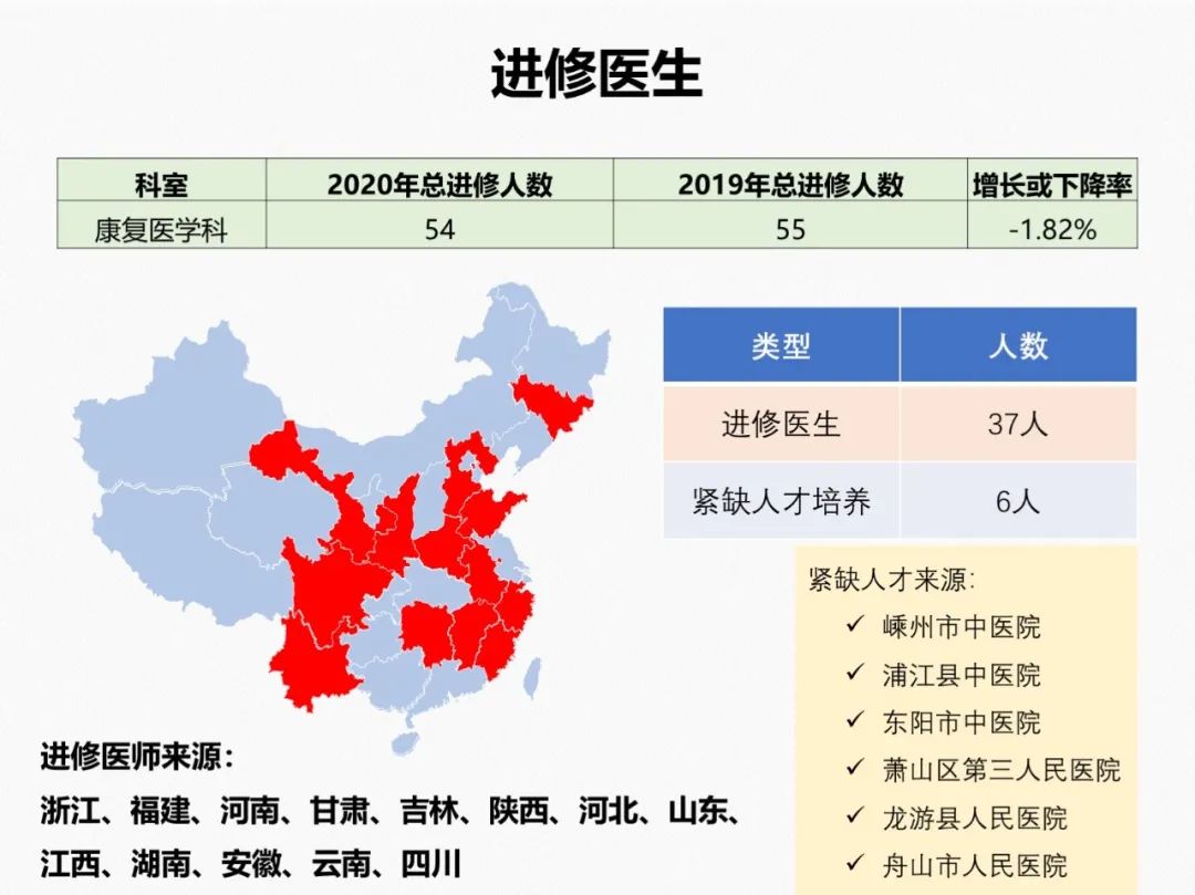 经过18年的努力,康复服务范围含盖了骨科、神经内科、脑外科、重症监护、心脏外科、胸外科、肿瘤外科、放疗科、普外科、呼吸内科、移植科等10余个相关临床科室,已连续6年(2014-2019)获得复旦大学医院管理研究所《中国医院最佳声誉专科排行榜》提名,名列华东地区第4位,浙江省内排名第1位。